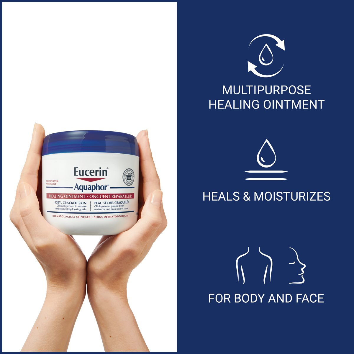 Eucerin Aquaphor Healing Ointment is well tolerated, gentle, non-comedogenic, and contains no added fragrances, colorants, alcohol and preservatives that could, in some people, cause skin irritation or contact dermatitis.