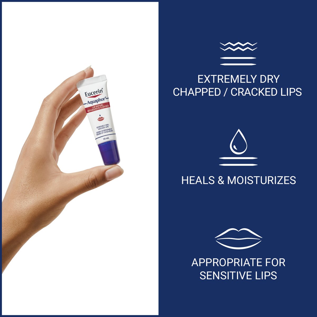 You can apply Eucerin Aquaphor Lip Repair whenever your lips feel dry and tight, and as often as you like. The handy 10ml squeeze tube makes it easy to pop in your bag and carry around with you wherever you go.