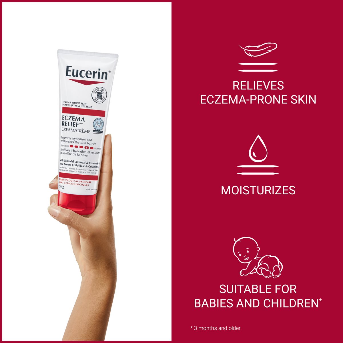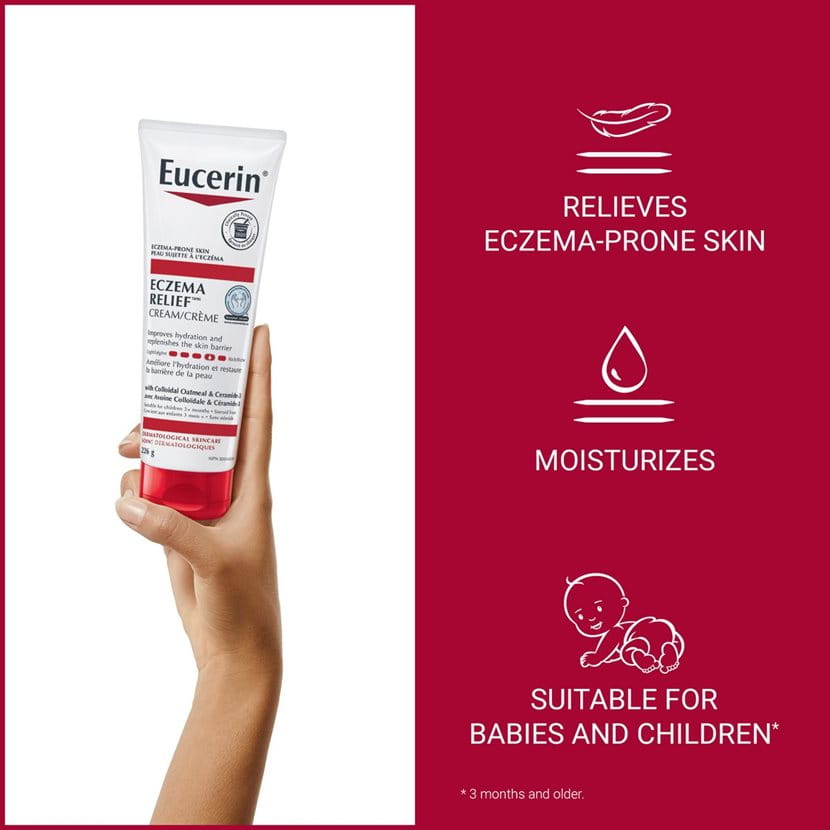 Eucerin Eczema Relief Body Creme provides long-lasting hydration to help relieve minor skin irritation and itching due to eczema.