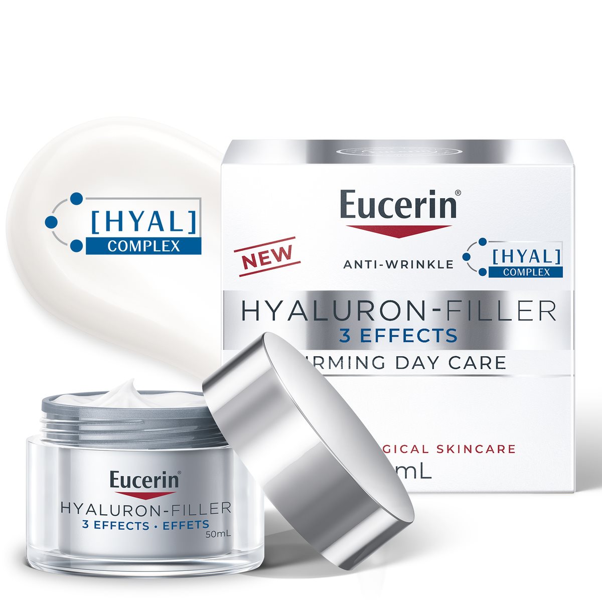 As skin ages, it loses its moisture and firmness, leading to fine lines and wrinkles. Now there’s Eucerin® Hyaluron-Filler 3 Effects Day Care, formulated with high and low molecular Hyaluronic Acid to deliver hydration where it’s needed most. While High Molecular Hyaluronic Acid smooths the skin’s surface and enhances moisture retention, Low Molecular Hyaluronic Acid re-plumps the look of wrinkles and ensure longer-lasting hydration.