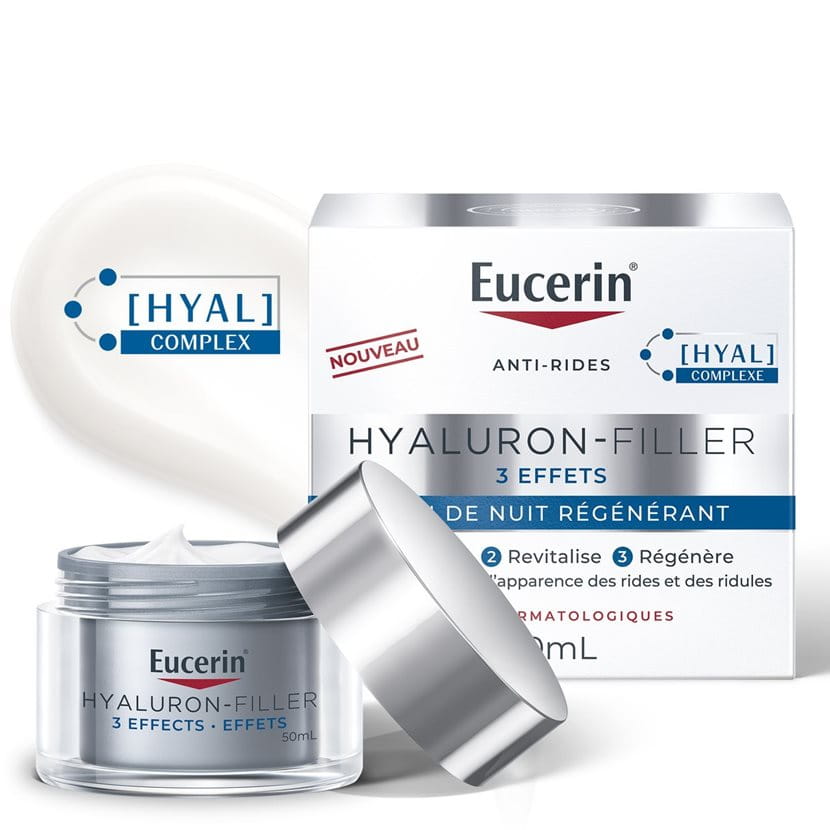 As we age, the skin’s own production of hyaluronic acid decreases, causing skin to form wrinkles and look older. The Eucerin® Hyaluron-Filler +3 Effects Firming Night Care helps the skin’s own natural nightly repair process, deeply hydrating your skin while reducing the appearance of wrinkles. Combining High and Low Molecular Hyaluronic Acid with Glycine Saponin helps to renew the skin’s moisture barrier, leaving you with firmer looking skin.